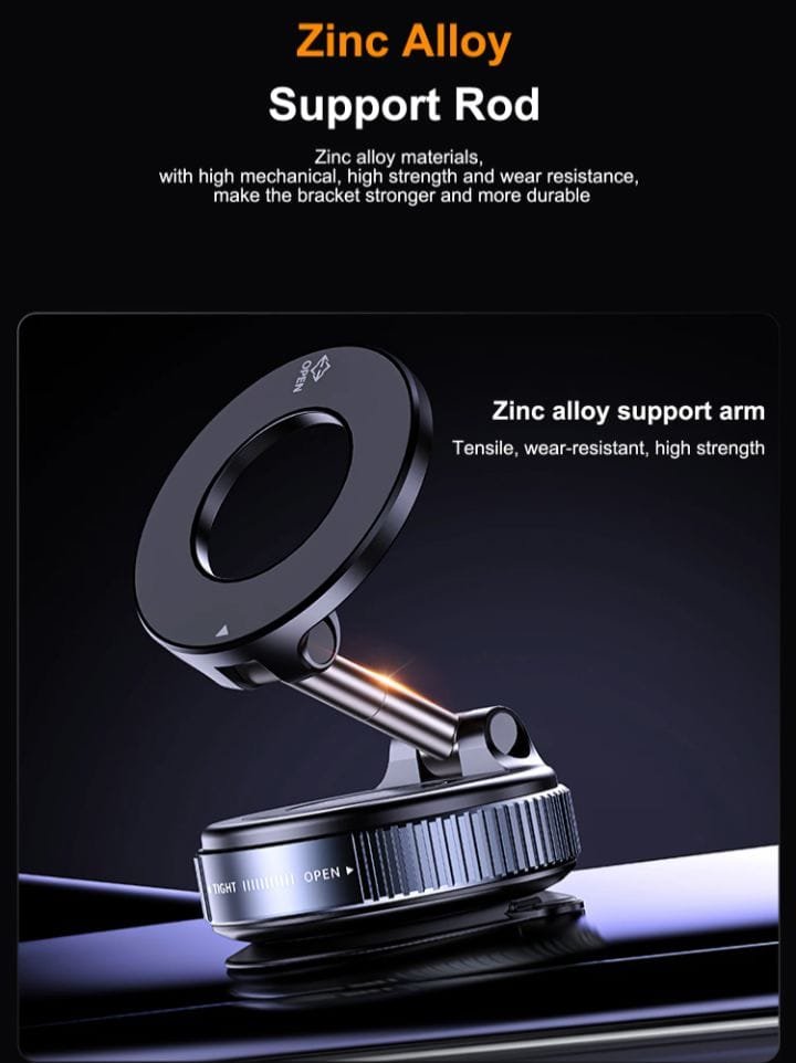 Experience the next generation of car mounts with our Premium Zinc Alloy Magnetic Vacuum Mount. Combining sleek aesthetics with industrial strength, this holder ensures your phone stays exactly where you need it, even on the bumpiest roads.
