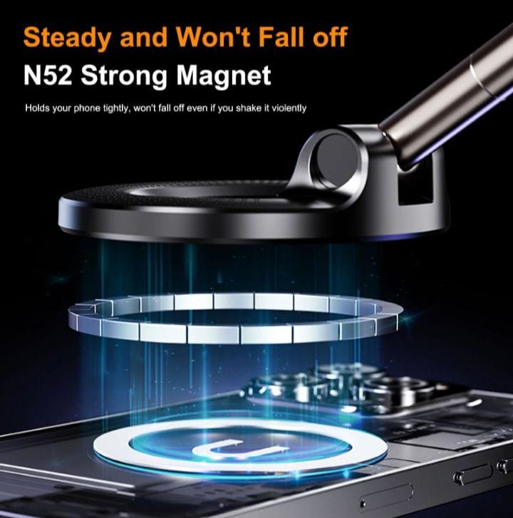 360° Adjustability: The folding arm and rotating magnetic head allow you to adjust your phone to any angle for safe navigation and hands-free calls.